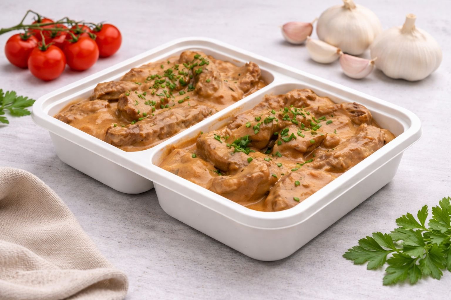 Carne macia cozida no molho cremoso clássico do strogonoff, com o equilíbrio perfeito entre creme e temperos. Uma opção tradicional, cremosa e irresistível.
